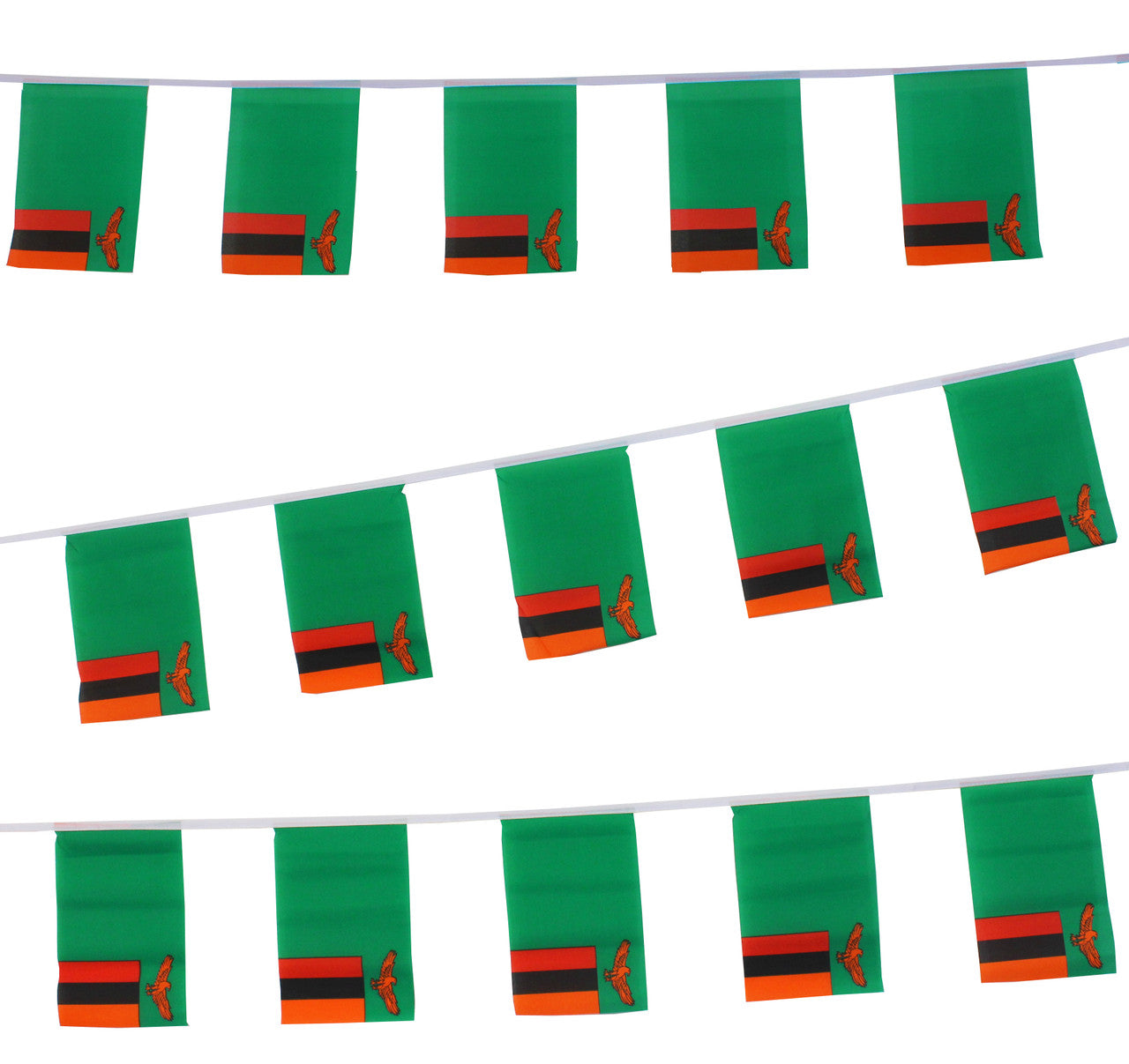 Our Zambia bunting is 100% premium polyester, suitable for indoor and outdoor use.