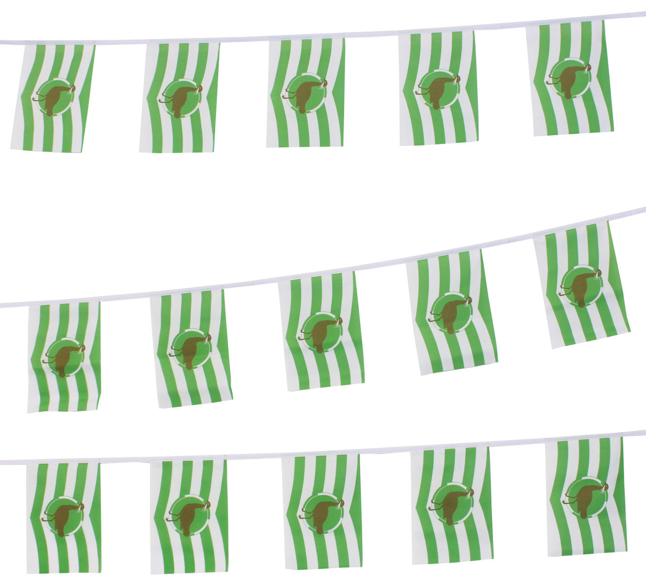 Flags are suitable for indoor and outdoor use; however, they will deteriorate in high winds (we recommend taking them down ahead of particularly bad weather).