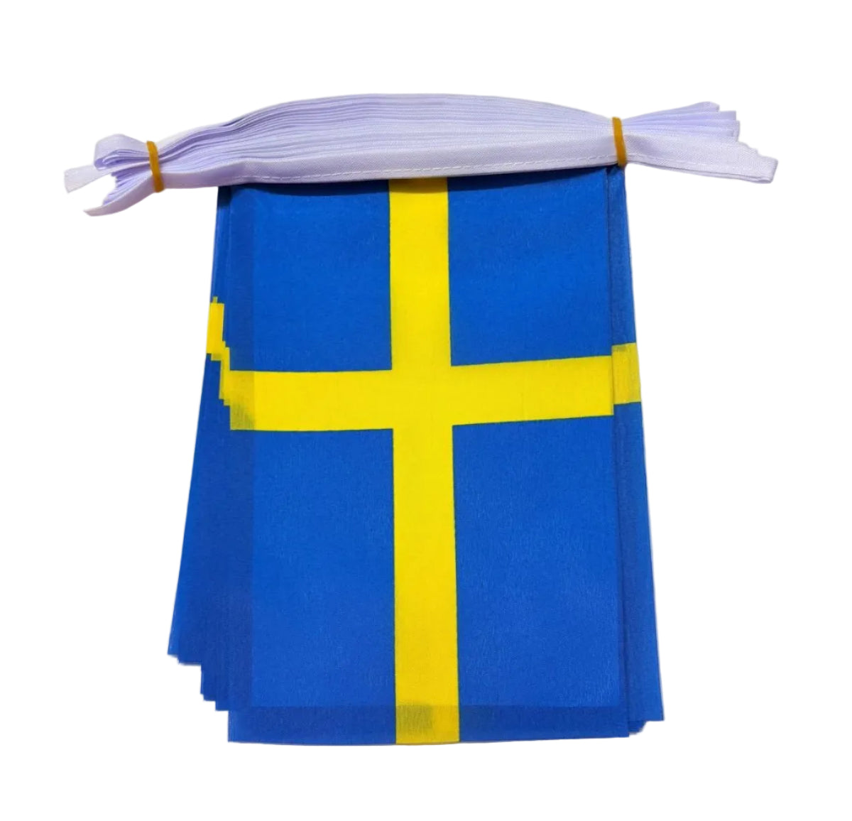 Sweden Bunting is 100% premium polyester, suitable for indoor and outdoor use.