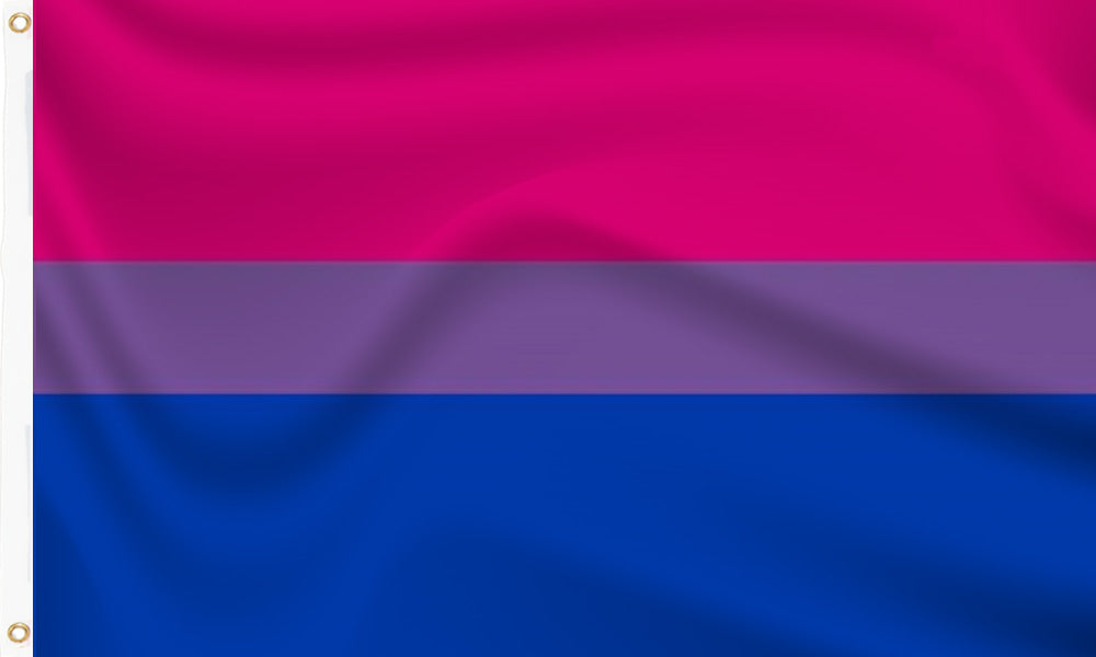 Bi-Pride (Bisexual) flags are 100% premium polyester, suitable for indoor and outdoor use. Available as display flags (e.g. for flagpoles or wall displays), waving flags, and table flags.