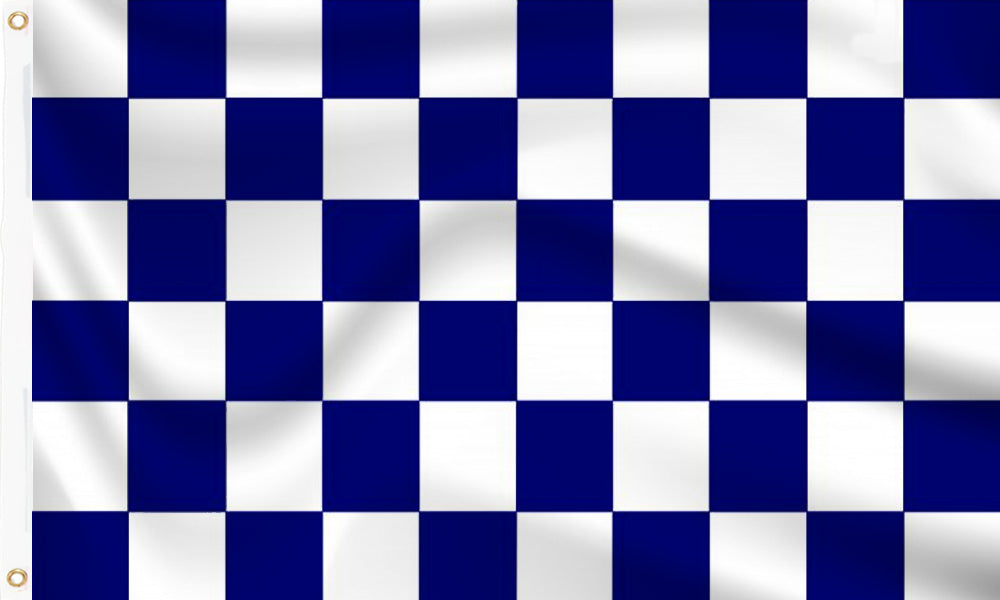 Blue and White Chequered Flagss are 100% premium polyester, suitable for indoor and outdoor use. Available as display flags (e.g. for flagpoles or wall displays), waving flags, and table flags.