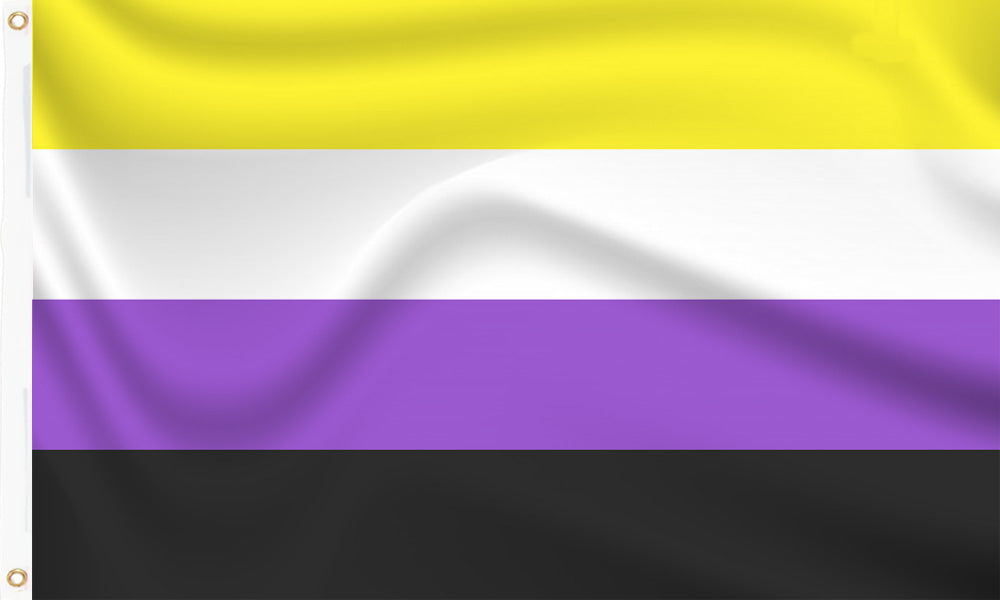 Non Binary flags are 100% premium polyester, suitable for indoor and outdoor use. Available as display flags (e.g. for flagpoles or wall displays).