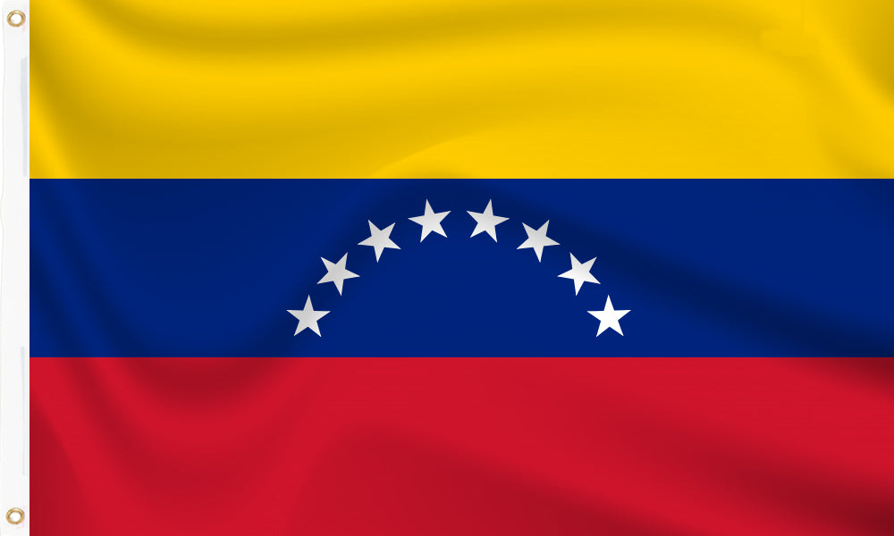 Venezuela flags are 100% premium polyester, suitable for indoor and outdoor use. Available as display flags (e.g. for flagpoles or wall displays), waving flags, and table flags.