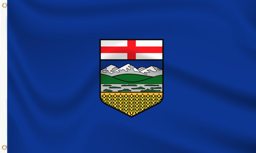 Alberta flags are 100% premium polyester, suitable for indoor and outdoor use. Available as display flags, for flagpoles or wall displays.