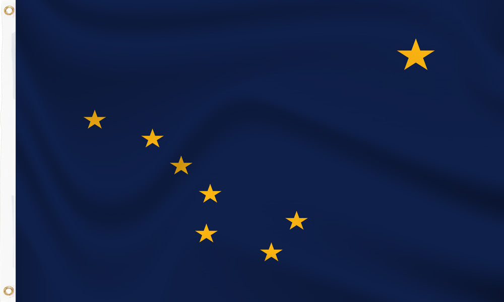 Alaska Flags are 100% premium polyester, suitable for indoor and outdoor use. Available as display flags (e.g. for flagpoles or wall displays), waving flags, and table flags.