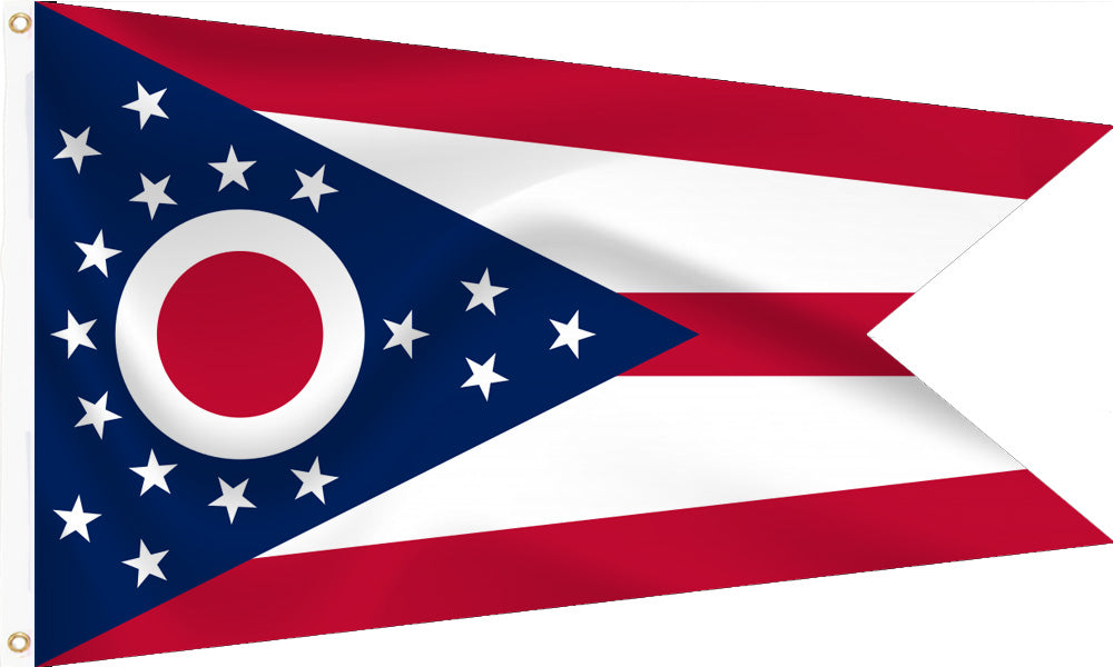 Ohio Flags are 100% premium polyester, suitable for indoor and outdoor use. Available as display flags (e.g. for flagpoles or wall displays), waving flags, and table flags.