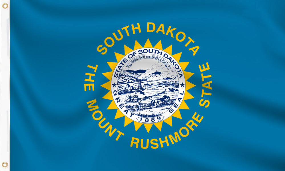 South Dakota Flags are 100% premium polyester, suitable for indoor and outdoor use. Available as display flags (e.g. for flagpoles or wall displays), waving flags, and table flags.