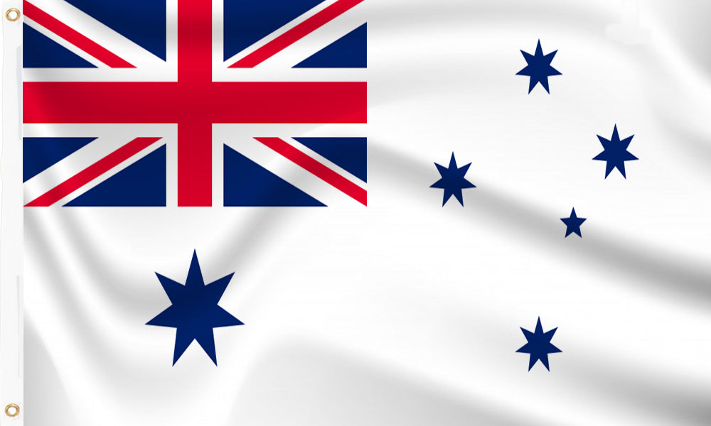 Australia White Ensign Flags are 100% premium polyester, suitable for indoor and outdoor use. Available as display flags, for flagpoles or wall displays.