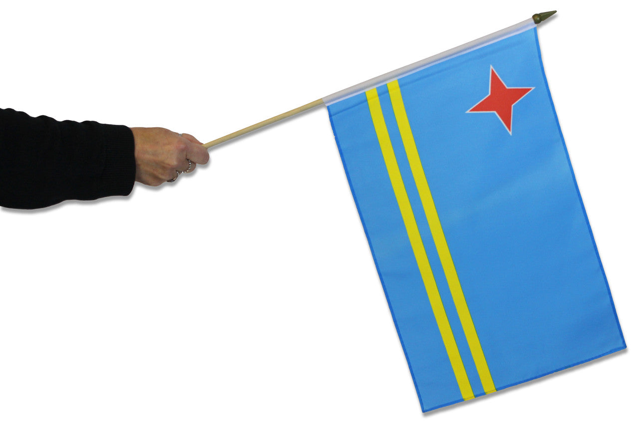Aruba Waving Flags are 100% polyester on wooden sticks, making them perfect for waving or displaying.