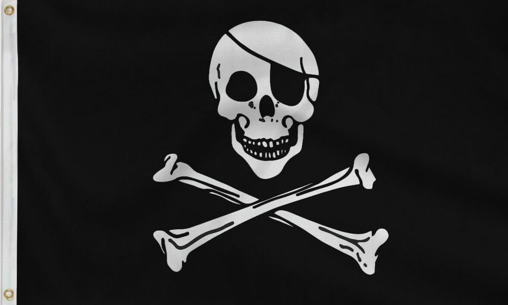 Pirate Skull & Crossbones flags are 100% premium polyester, suitable for indoor and outdoor use. Available as display flags (e.g. for flagpoles or wall displays), waving flags, and table flags.