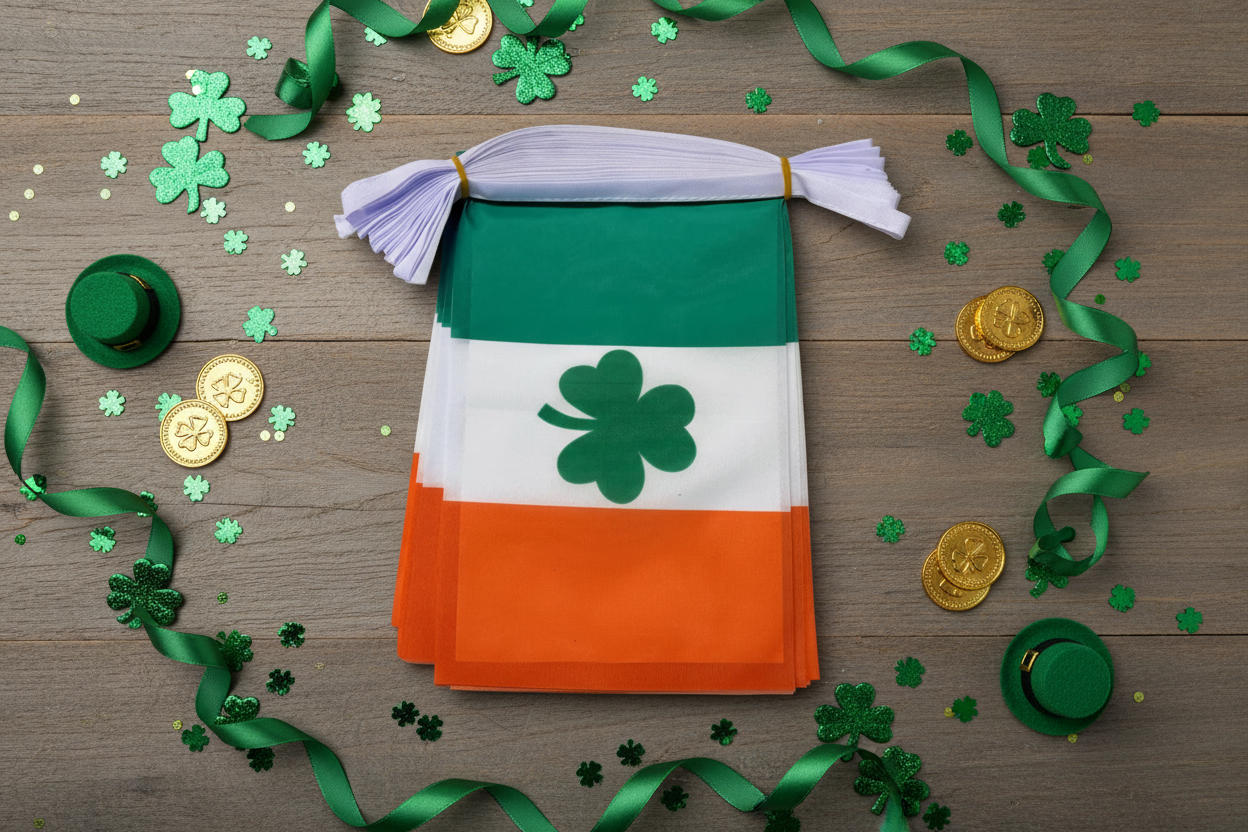 Celebrate St Patrick's Day with our premium collection of Irish flags and green bunting. Perfect for St Patrick's Day parades, decorating pubs and venues, Irish celebrations, and honouring Ireland's patron saint on 17th March.