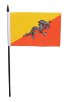 Bhutan Desk / Table Flags are 100% polyester on black plastic sticks.