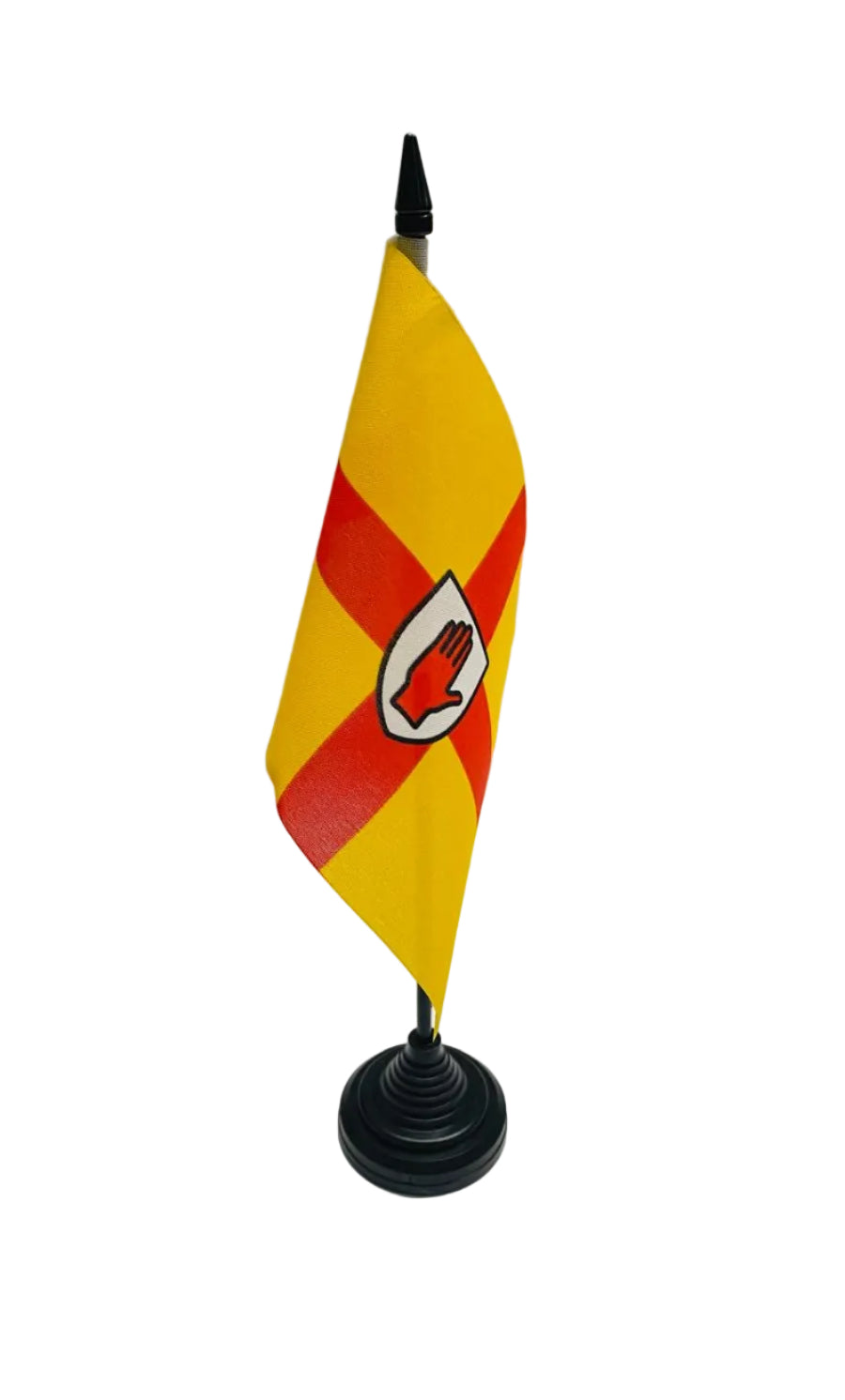 Ulster Desk / Table Flags are 100% polyester on black plastic sticks.