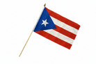 Puerto Rico Waving Flags are 100% polyester on wooden sticks, making them perfect for waving or displaying.