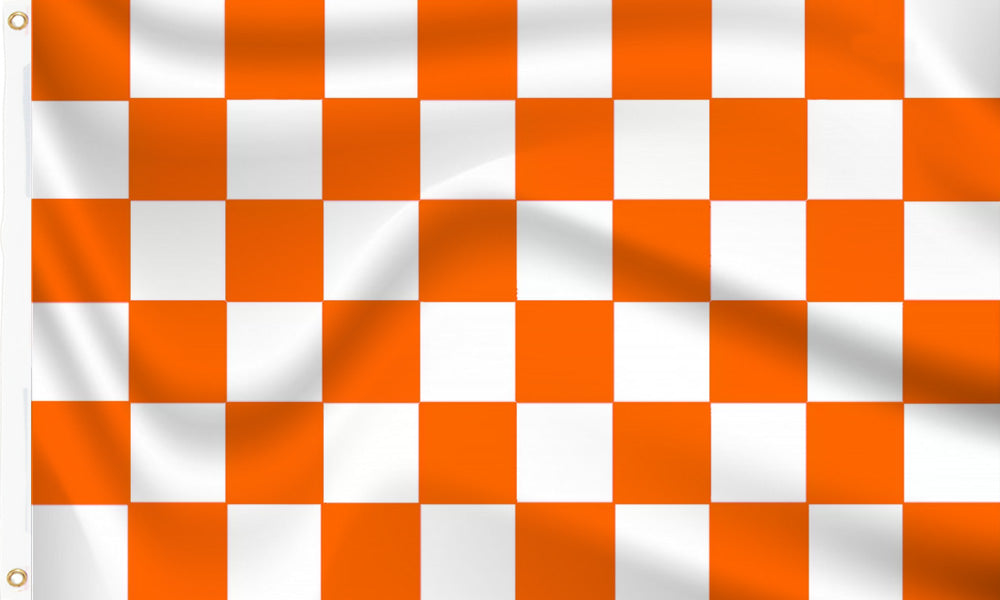 Orange and White Chequered Flags are 100% premium polyester, suitable for indoor and outdoor use. Available as display flags (e.g. for flagpoles or wall displays).