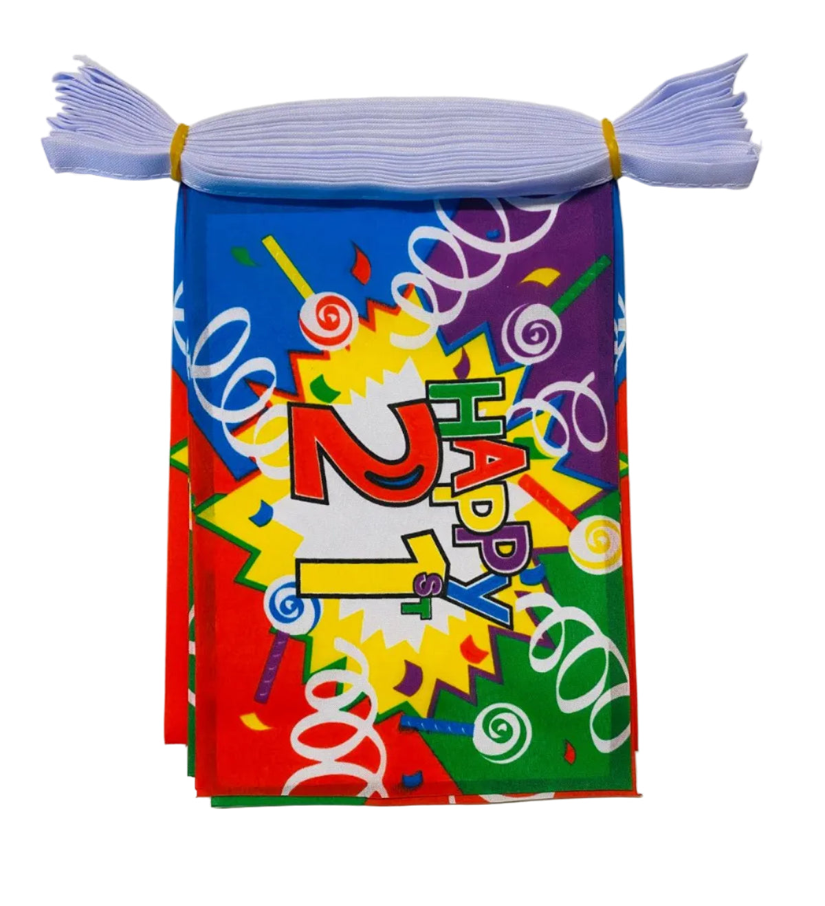 Happy 21st Birthday Bunting is 100% premium polyester, suitable for indoor and outdoor use.