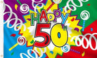 Happy 50th Birthday flags are 100% premium polyester, suitable for indoor and outdoor use. Available as display flags (e.g. for flagpoles or wall displays).
