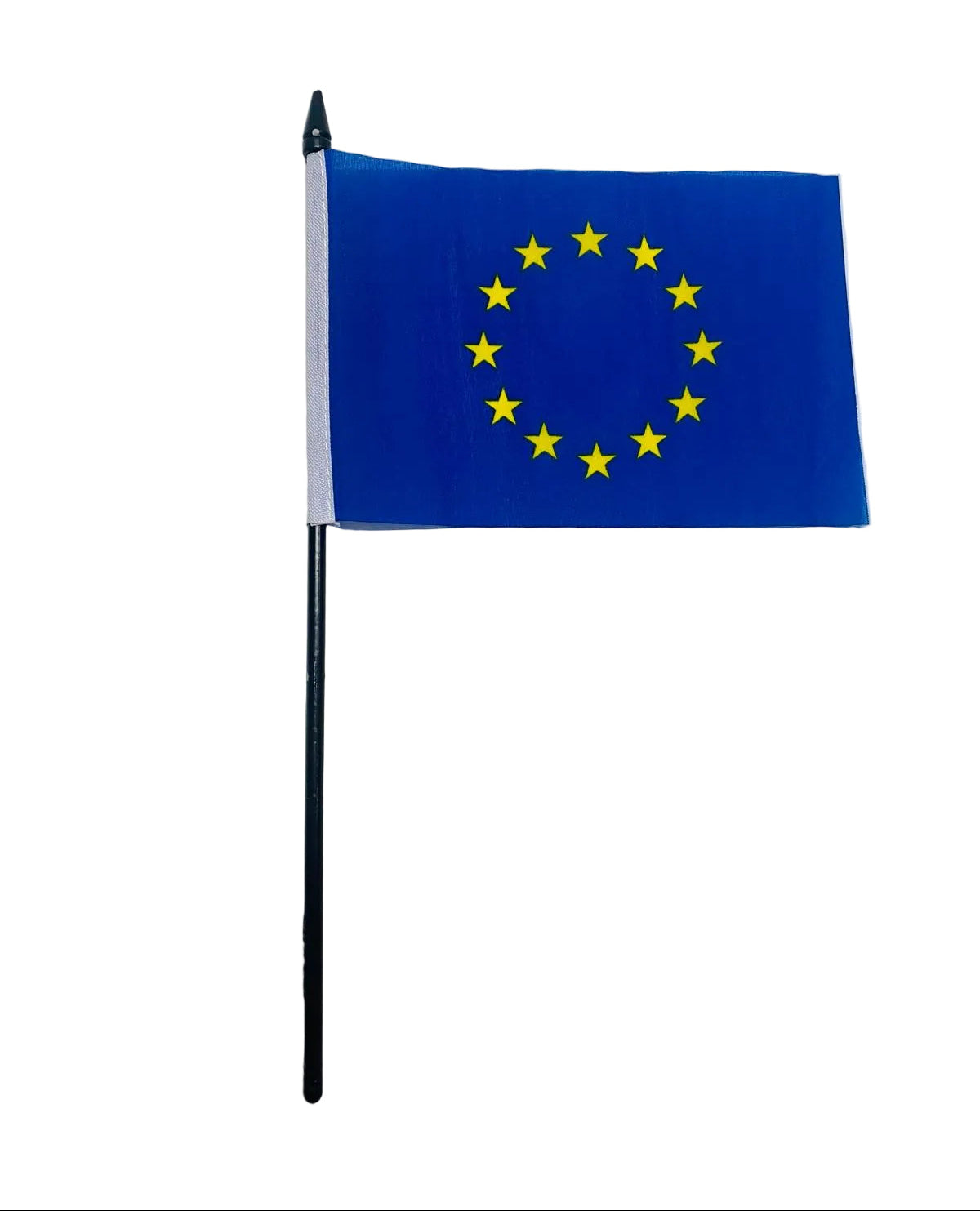 European Union EU Desk / Table Flags are 100% polyester on black plastic sticks.
