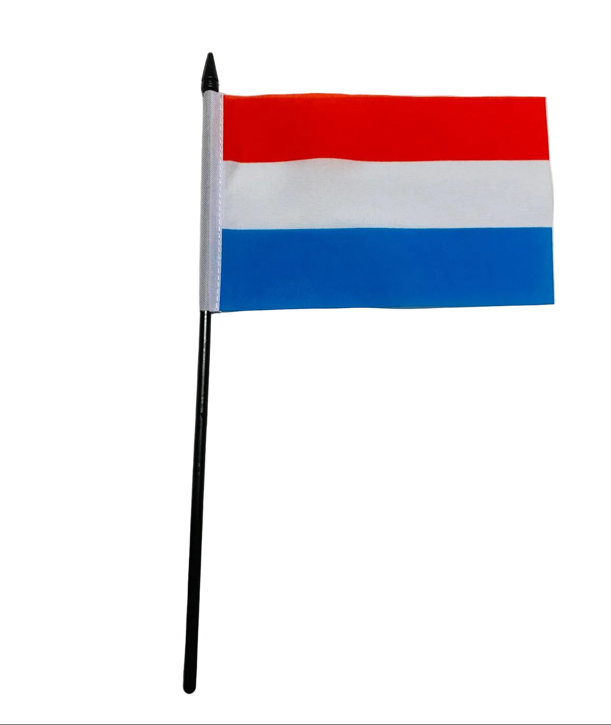 Luxembourg Desk / Table Flags are 100% polyester on black plastic sticks.