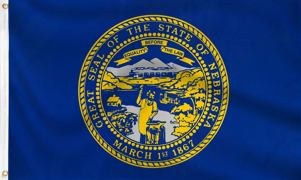Nebraska Flags are 100% premium polyester, suitable for indoor and outdoor use. Available as display flags (e.g. for flagpoles or wall displays), waving flags, and table flags.