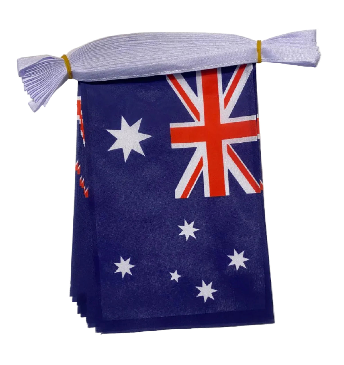 Australia Bunting is 100% premium polyester, suitable for indoor and outdoor use.