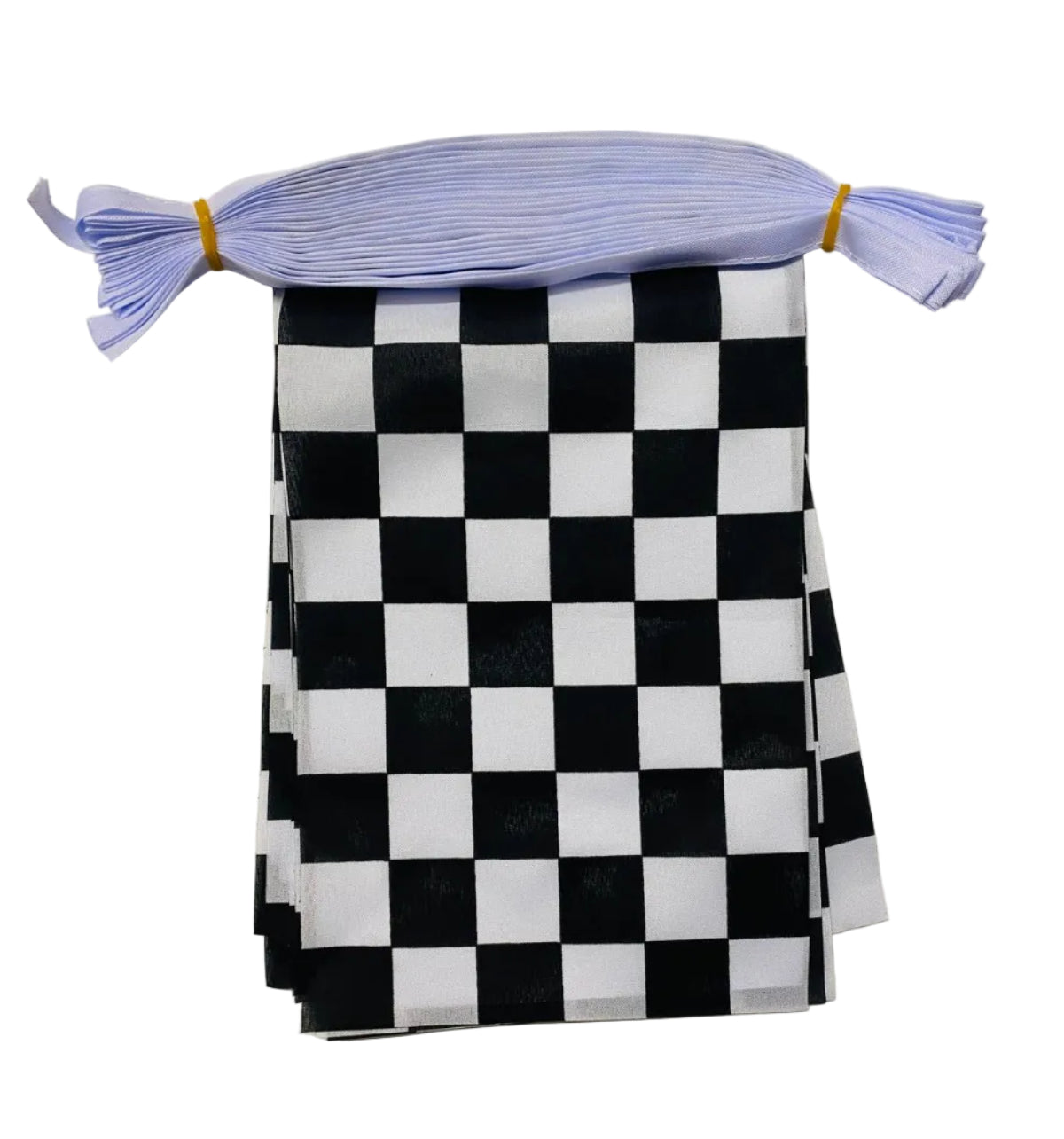 Black & White Chequered Bunting is 100% premium polyester, suitable for indoor and outdoor use.