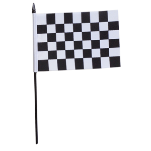 Black & White Chequered Desk / Table Flags are 100% polyester on black plastic sticks.