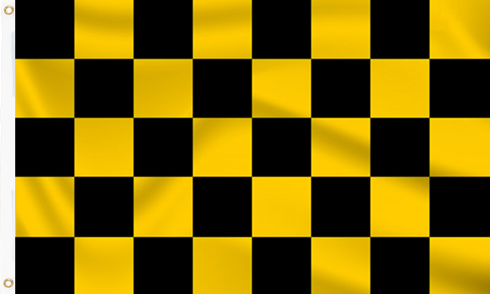 Black & Yellow Chequered Flags are 100% premium polyester, suitable for indoor and outdoor use. Available as display flags (e.g. for flagpoles or wall displays).