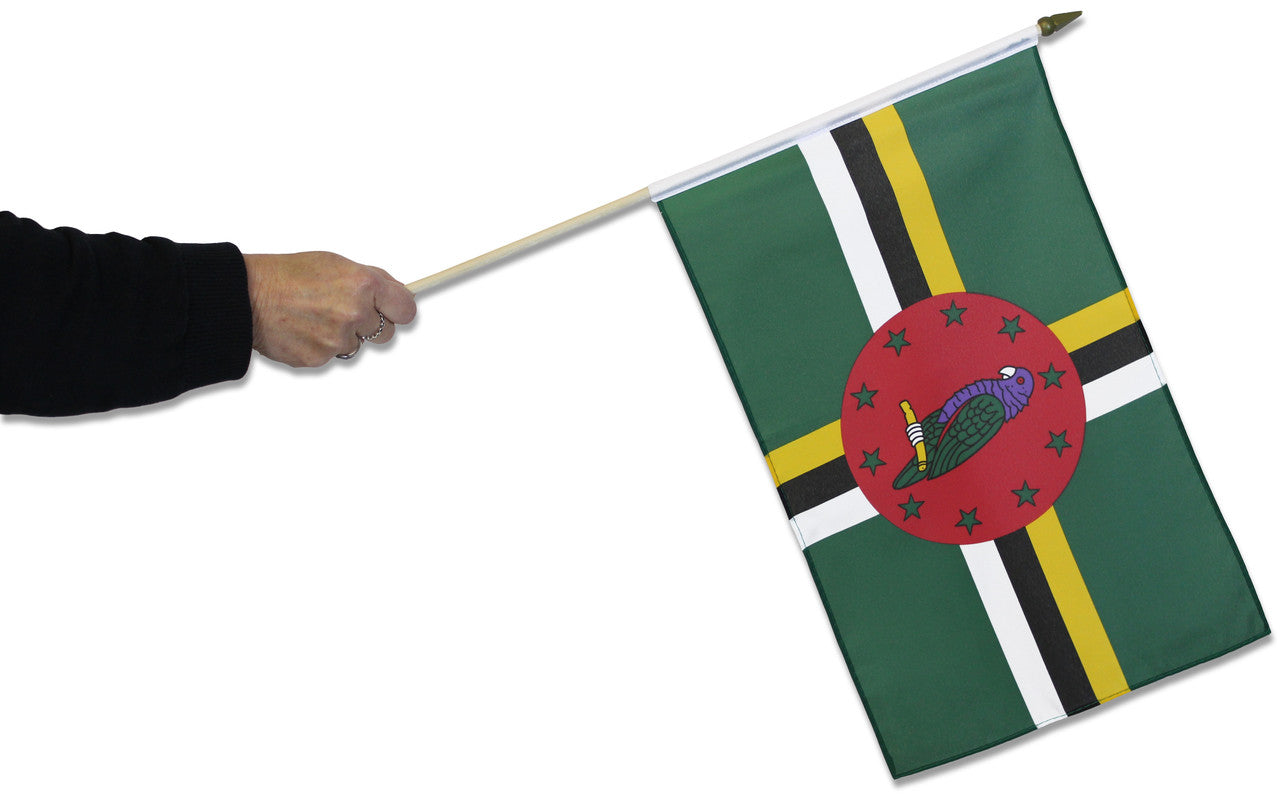 Dominica Waving Flags are 100% polyester on wooden sticks, making them perfect for waving or displaying.