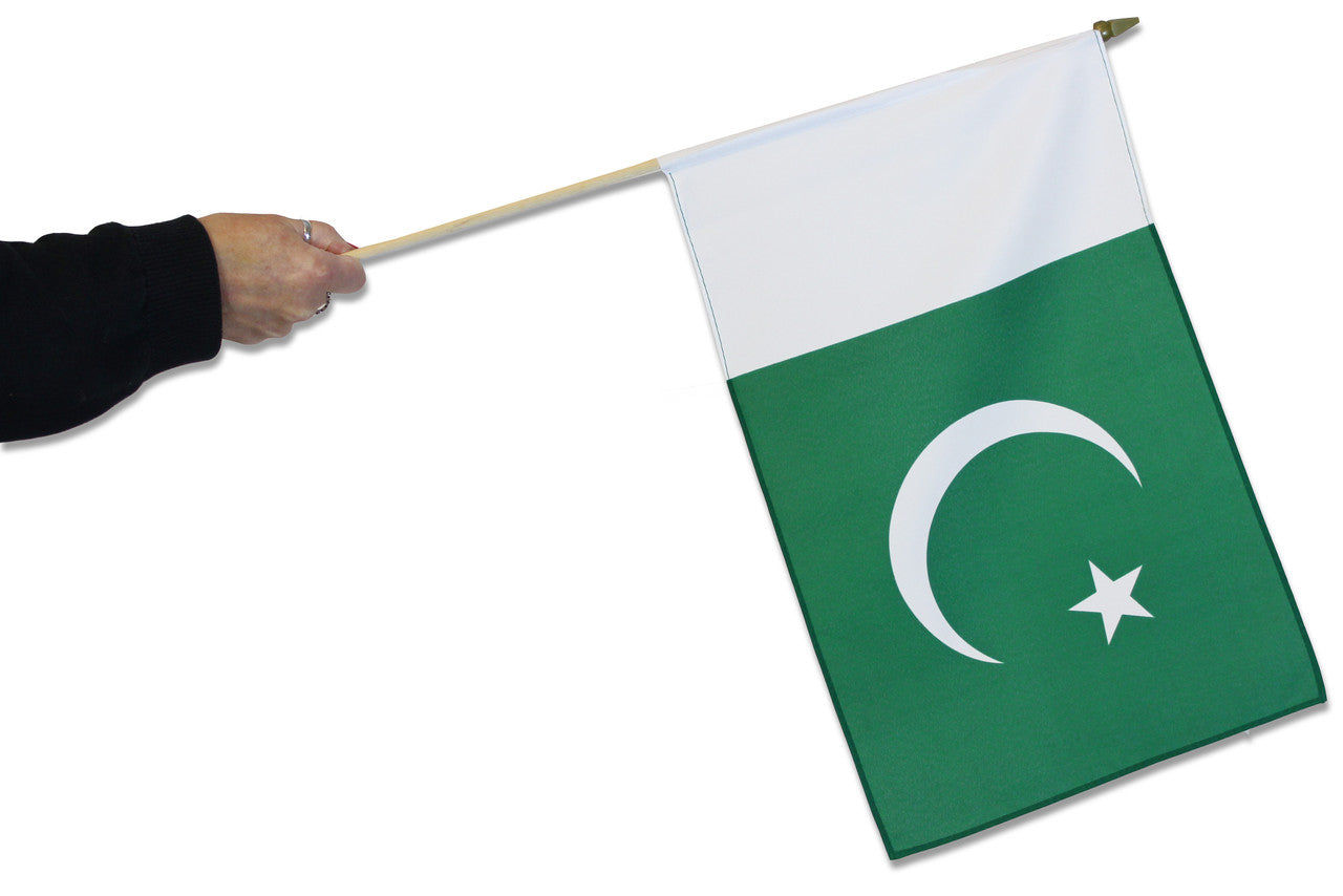 Pakistan Waving Flags are 100% polyester on wooden sticks, making them perfect for waving or displaying.