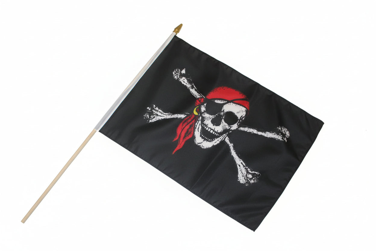 Pirate Red Scarf Waving Flags are 100% polyester on wooden sticks, making them perfect for waving or displaying.