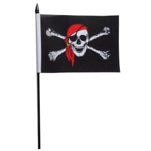 Pirate Desk / Table Flags are 100% polyester on black plastic sticks.