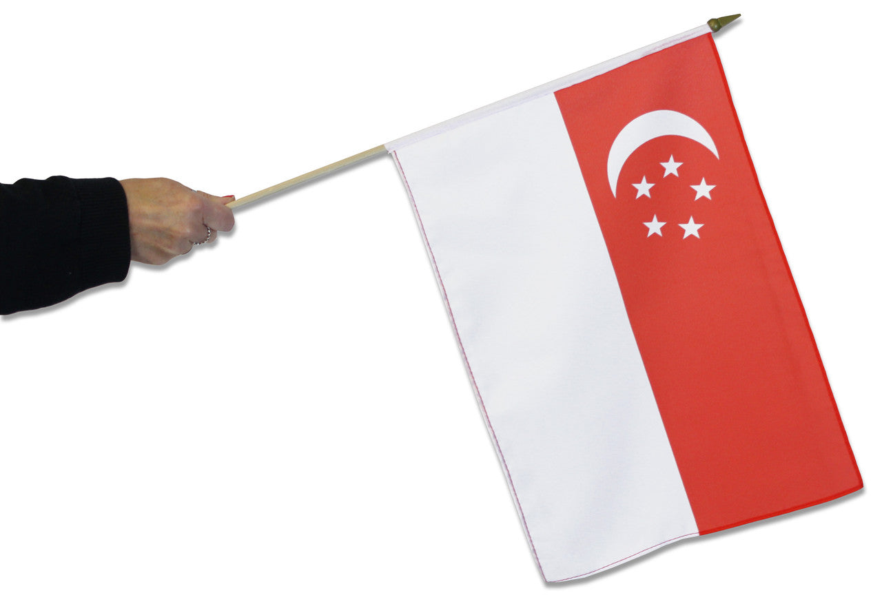 Singapore Waving Flags are 100% polyester on wooden sticks, making them perfect for waving or displaying.