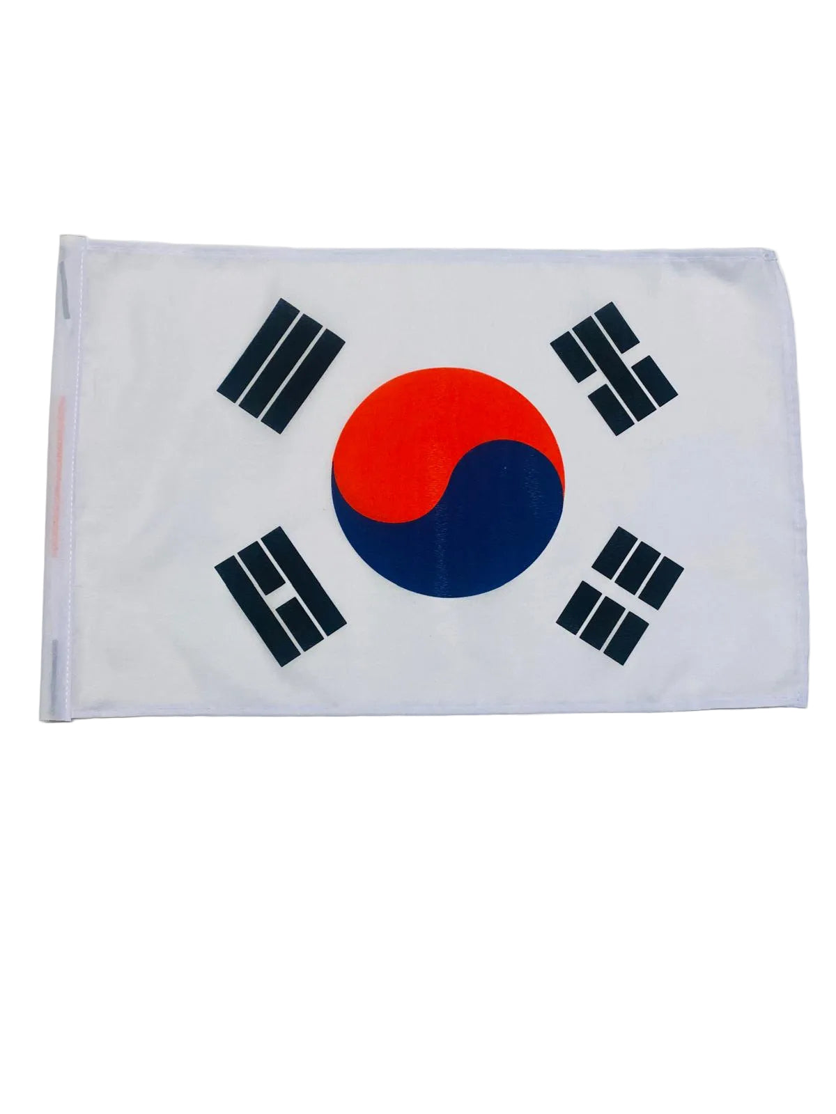 Our South Korea flags are crafted from 100% premium polyester fabric, designed for both indoor and outdoor use. Featuring white field with red & blue taegeuk (yin-yang) and four black trigrams. Printed with fade-resistant inks to maintain colour accuracy in all weather conditions.