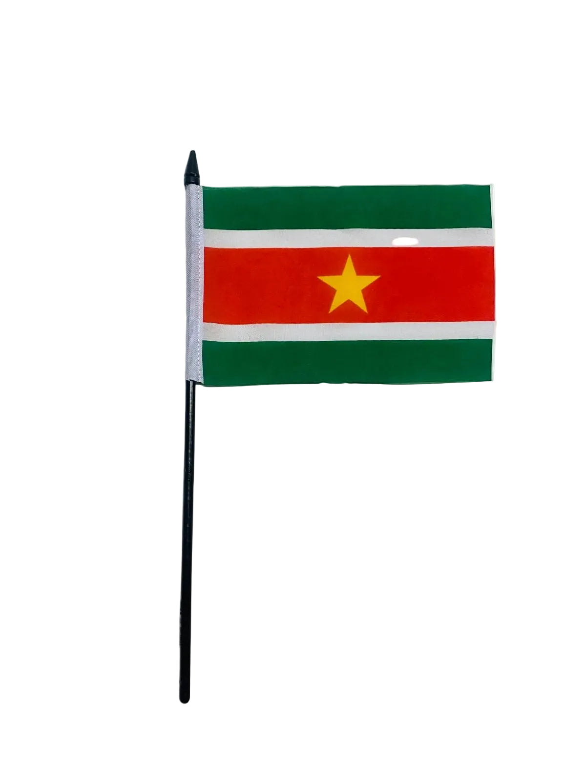 Suriname Waving Flags are 100% polyester and available in three size options. Each flag comes with a removable stick, making them perfect for waving or displaying.