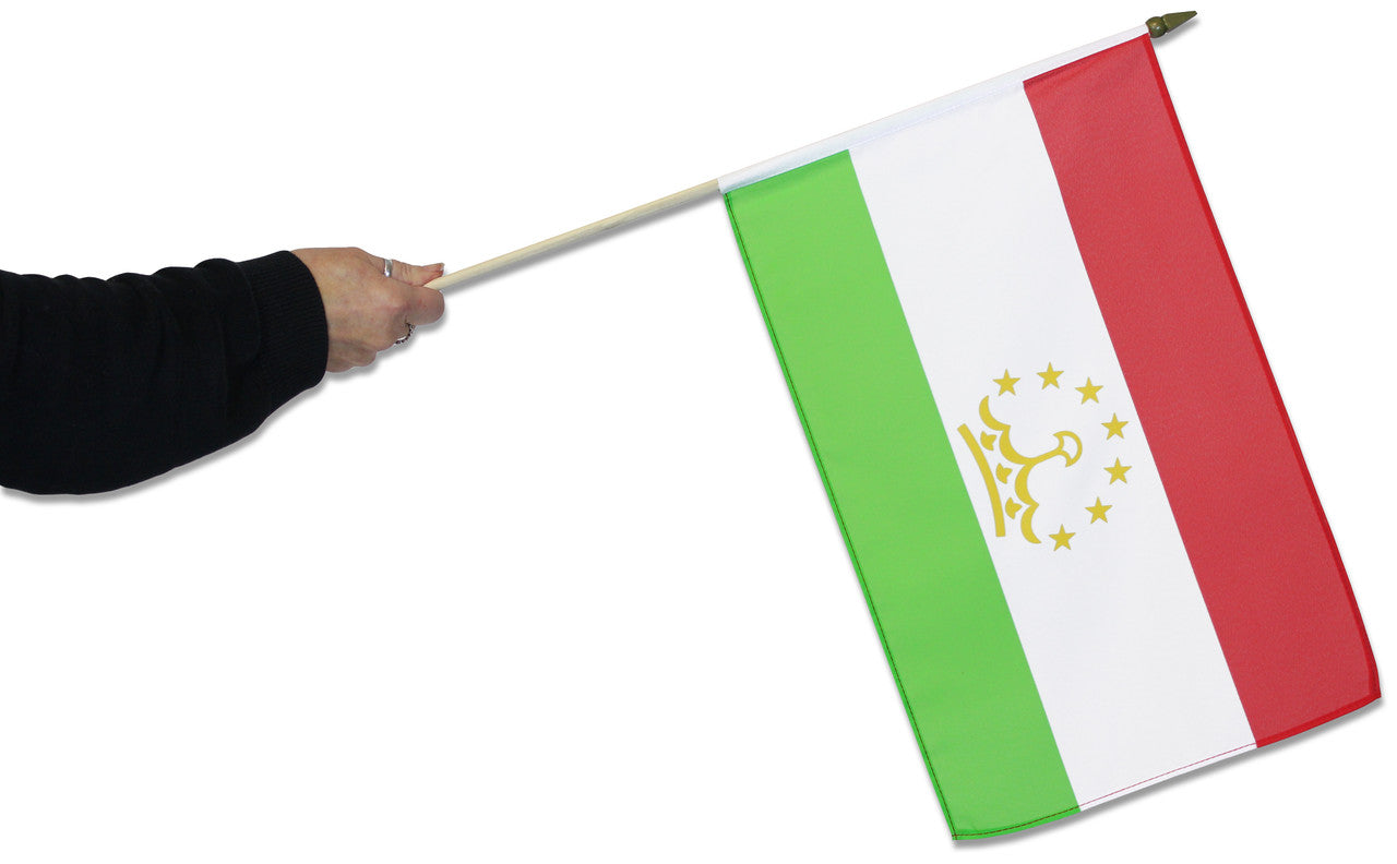 Tajikistan Waving Flags are 100% polyester on wooden sticks, making them perfect for waving or displaying.