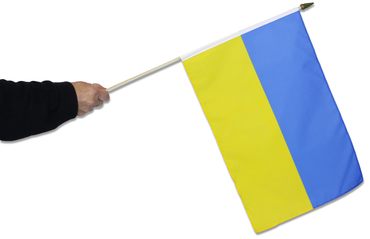 Ukraine Waving Flags are 100% polyester on wooden sticks, making them perfect for waving or displaying.