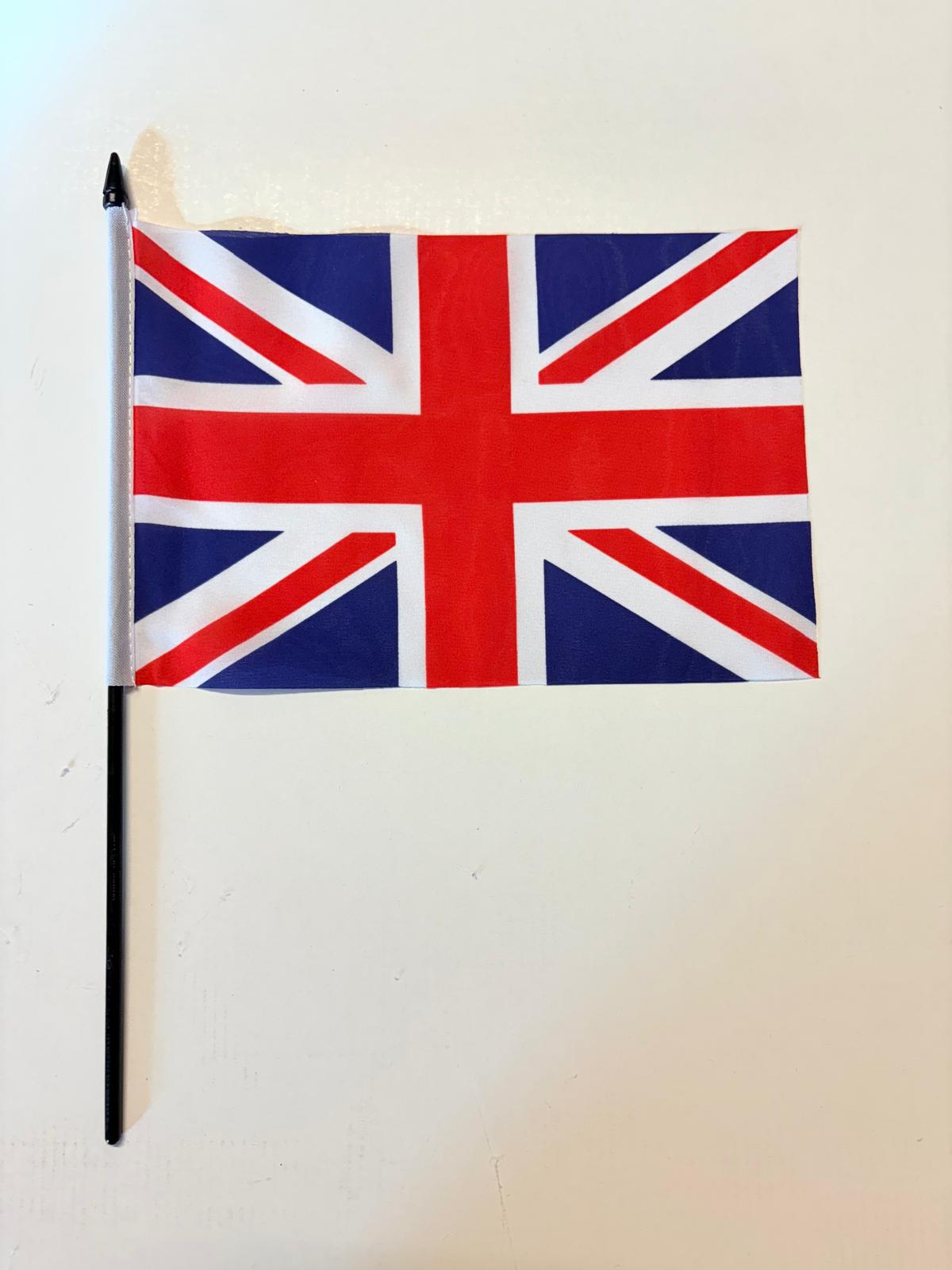 Union Jack Waving Flags are 100% polyester and available in four size options. Each flag comes with a stick, making them perfect for waving or displaying.