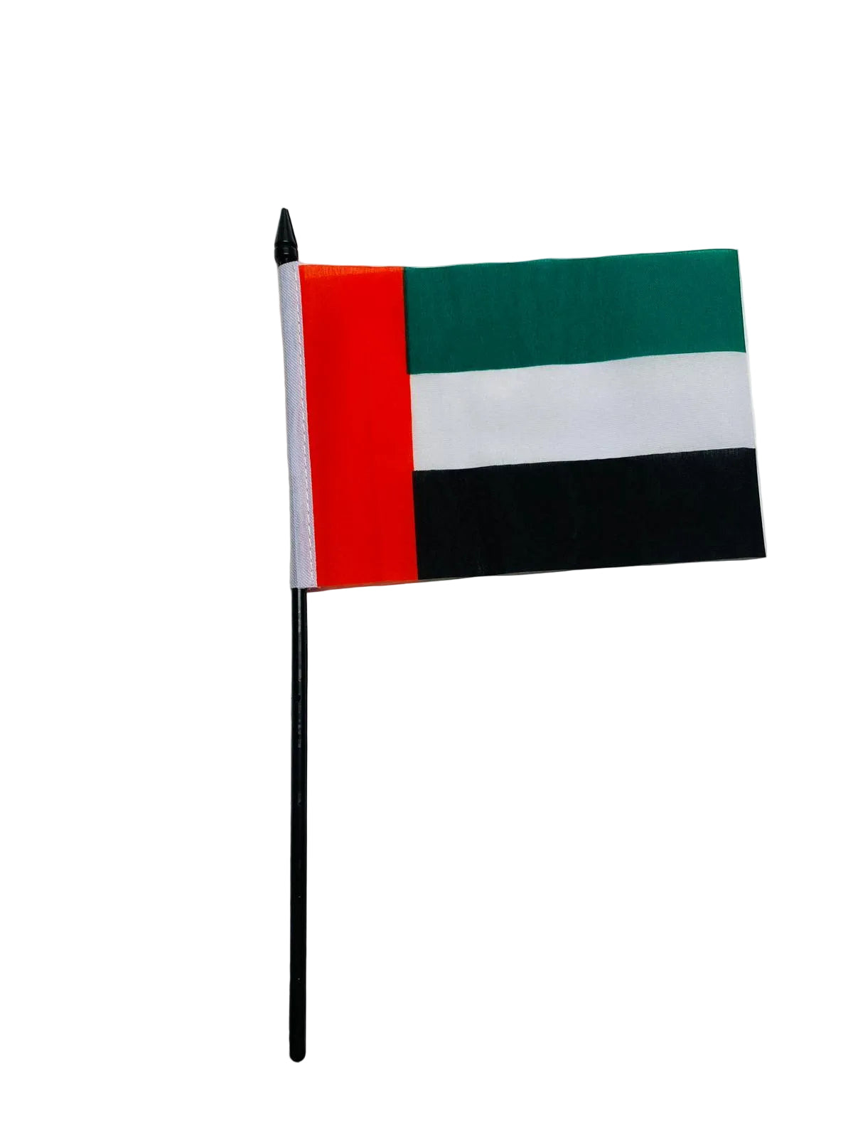 United Arab Emirates Waving Flags are 100% polyester and available in three size options. Each flag comes with a removable stick, making them perfect for waving or displaying.