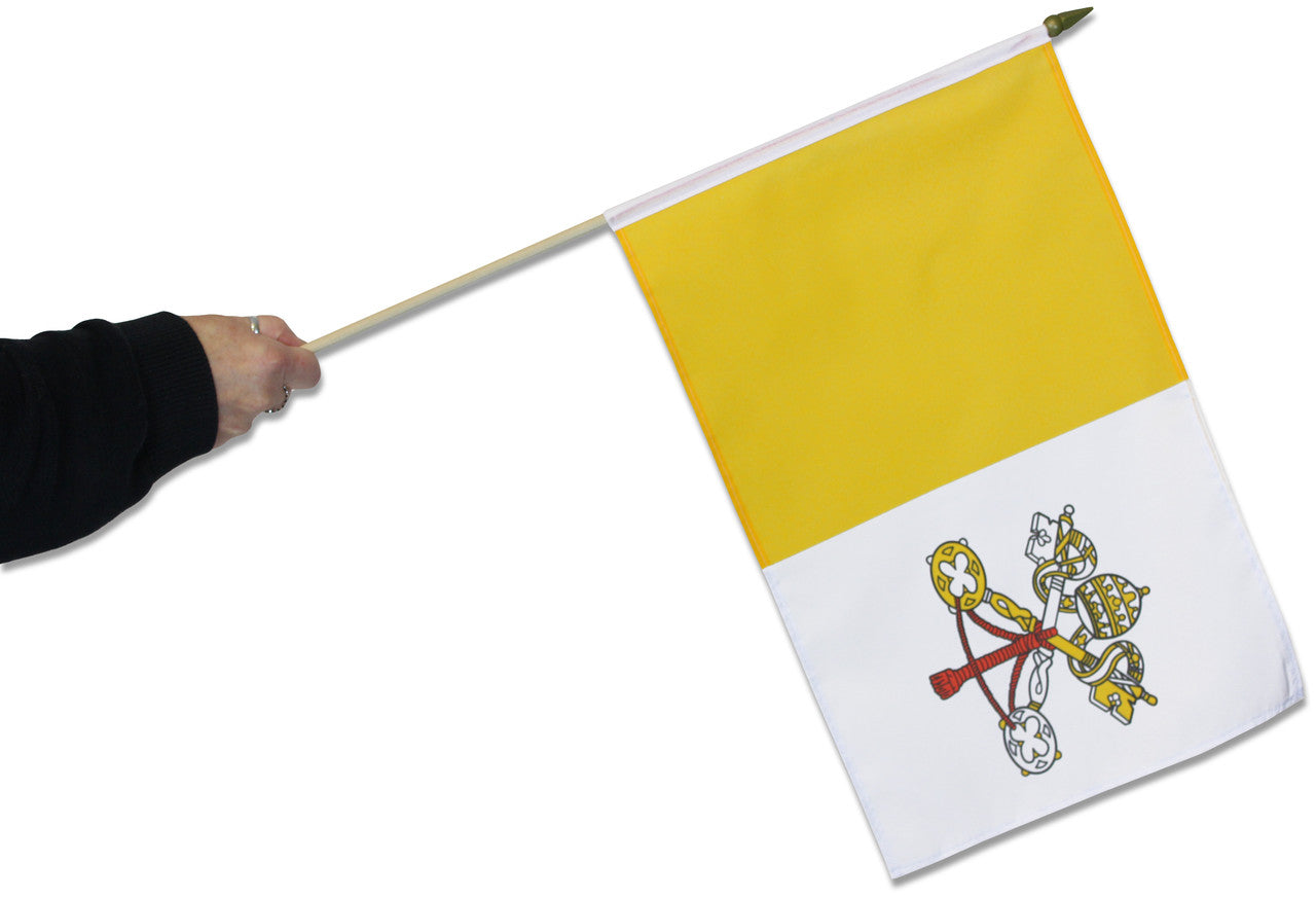 Vatican City Waving Flags are 100% polyester on wooden sticks, making them perfect for waving or displaying.