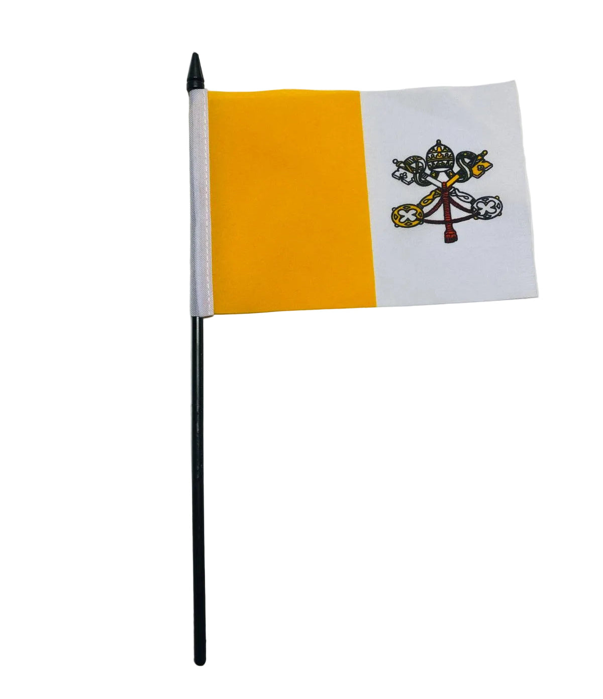 Vatican City Waving Flags are 100% polyester and available in three size options. Each flag comes with a removable stick, making them perfect for waving or displaying.