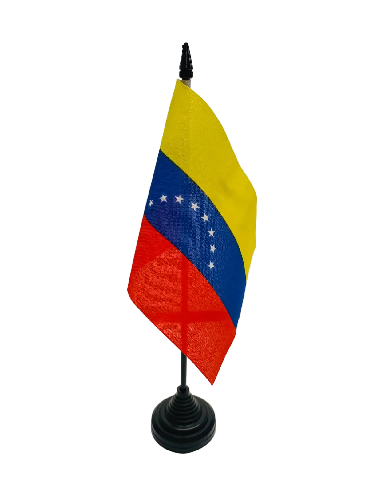 Venezuela Desk / Table Flags are 100% polyester on black plastic sticks.