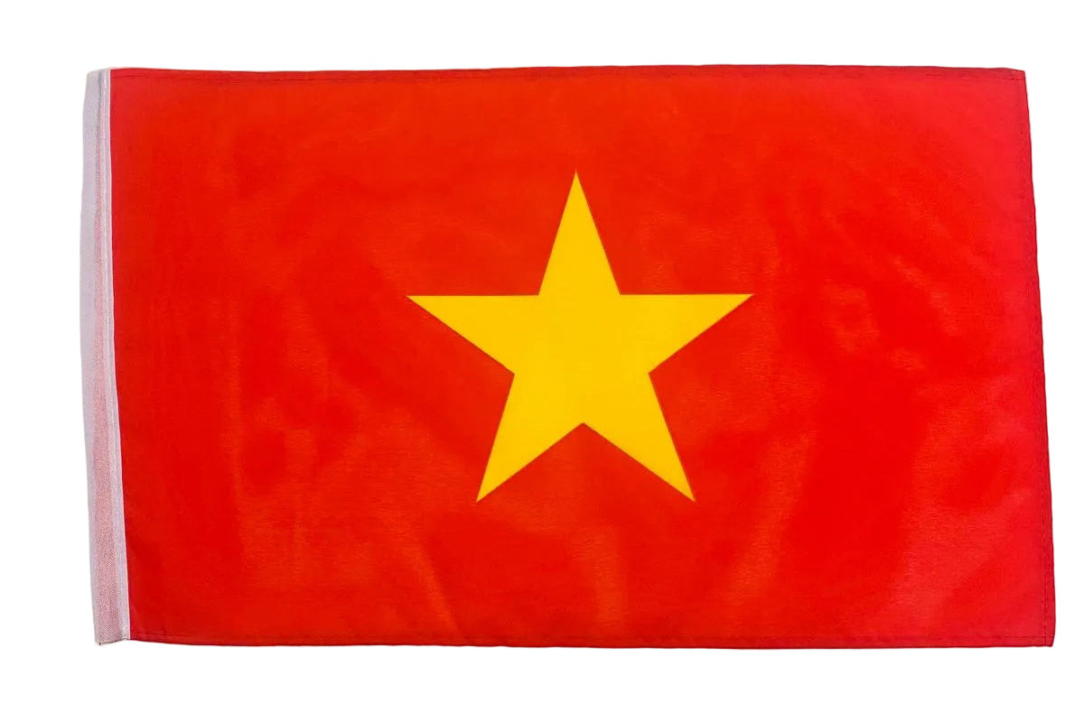Our Vietnam flags are crafted from 100% premium polyester fabric, designed for both indoor and outdoor use. Featuring red field with a large yellow star (communism, unity). Printed with fade-resistant inks to maintain colour accuracy in all weather conditions.