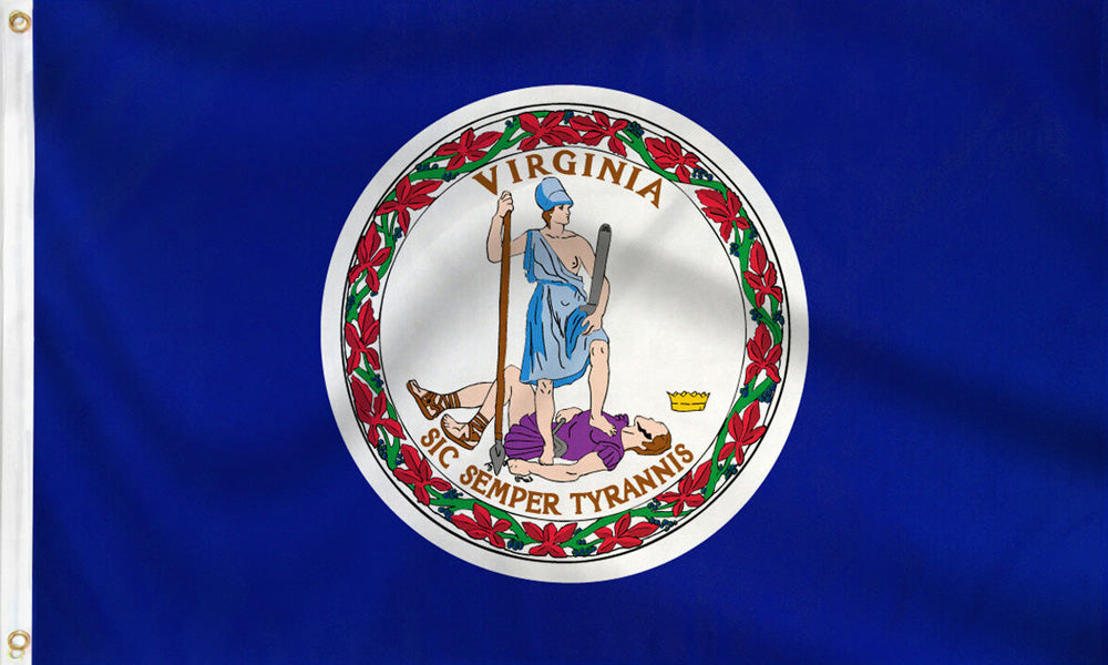 Virginia Flags are 100% premium polyester, suitable for indoor and outdoor use. Available as display flags (e.g. for flagpoles or wall displays), waving flags, and table flags.