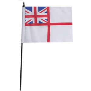 White Ensign Desk / Table Flags are 100% polyester on black plastic sticks.